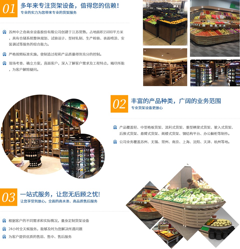 蘇州中之奇商業(yè)設(shè)備股份有限公司創(chuàng)建于2008年,是一家專注于貨(展)架研發(fā)、設(shè)計、銷售、生產(chǎn)、安裝服務(wù)于一體,為各具特色的連鎖品牌全天候便利店和大中型超市以及百貨等商場的商品展示提供創(chuàng)意和系統(tǒng)性解決方案的企業(yè)。公司擁有較強大的專業(yè)生產(chǎn)和提供商超貨(展)架、商超配件、商超木制品、新一代商超潮流精品超市和商超不銹鋼制品為主導(dǎo)、相關(guān)系列設(shè)施為配套的能力。公司還建有各種類型的商超貨(展)架實景樣板間。